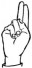 На ћирилици написано ИВАНА ДЕУРИЋ састоји се из 11 слова [?]. Исписано ћириличном једноручном азбуком за глувонеме: